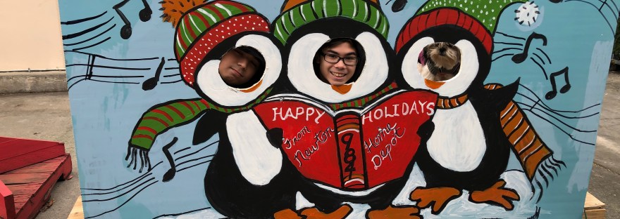 At this point, Logan was already pacing. I should have realized something was wrong, but I didn’t.I told both the boys it was their turn to sit with Santa, and Logan said he didn’t want to. I insisted. Logan sat next to Daniel and Santa. Santa gave them each a candy cane. After we left Santa, we took another picture at one of those stands where you stand behind it and put your head through the cutout. Logan seemed fine.